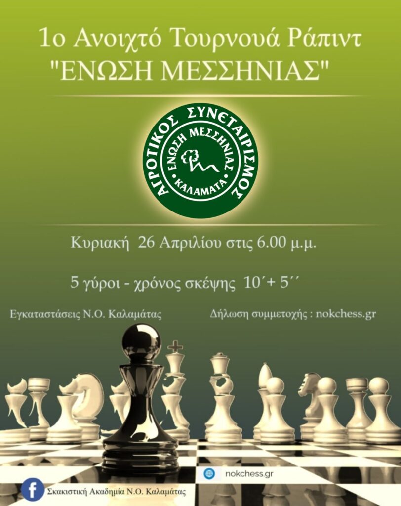 Facebook : Σκακιστική Ακαδημία Ν.Ο. Καλαμάτας.